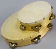 , самый распространённый вариант, с кожаной или пластиковой мембраной и металлическими тарелочками, укреплёнными в специальных прорезях на ободе. Инструмент твёрдо укрепился в профессиональной музыке, став одним из основных ударных инструментов симфонического оркестра.