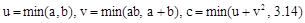 max(a-b, a, a+b) + min(a, b+c, a-c),