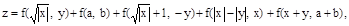 49. Построить подпрограмму-функцию, в которой вычисляются варианты значений функции в зависимости от знака и . Меняя входные параметры-значения подпрограммы-функции вычислить значение суммы z.