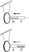 – объяснение опыта по электромагнитной индукции (падение металлического кольца на постоянный магнит);
