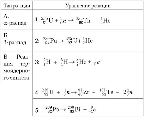 4. Установите соответствие между типом ядерной реакции и уравнением ядерной реакции.