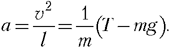| На основании второго закона Ньютона ускорение, вызванное суммой действующих на груз сил тяжести и натяжения нити, при прохождении положения равновесия равно центростремительному ускорению: