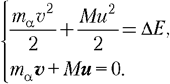| Ядро атома первоначально покоится, поэтому суммарный импульс продуктов реакции будет равен нулю. По условию задачи, суммарная кинетическая энергия продуктов реакции равна Е. Поэтому законы сохранения энергии и импульса для -распада ядра покоящегося нейтрального атома: