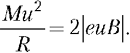 В магнитном поле под действием силы Лоренца ион начинает двигаться по дуге окружности. Уравнение движения тяжёлого иона с зарядом q = –2e в магнитном поле:
