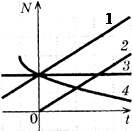 | 4. Модуль скорости тела, движущегося под действием постоянной силы по прямой, изменяется в соответствии с графиком (рис.1). Какой из графиков на рисунке 2 правильно отражает зависимость мощности этой силы от времени?