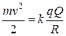 | В момент бросания шарик обладает кинетической энергией , а его потенциальная энергия в электростатическом поле заряженной сферы равна нулю.