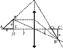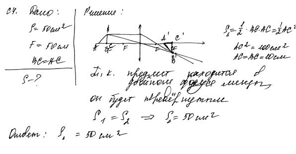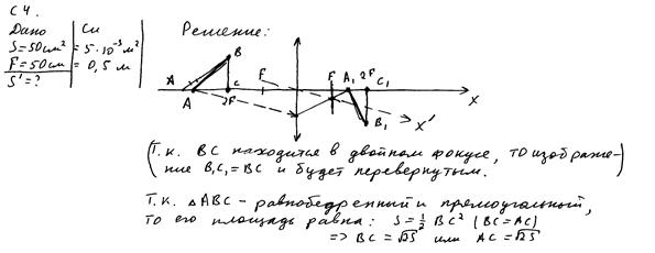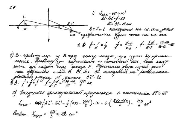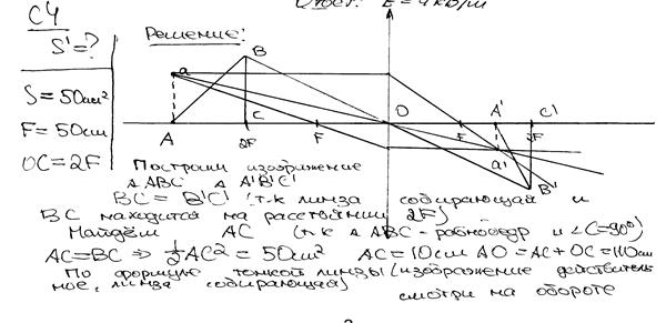 Построение изображения выполнено неверно. Формально присутствует верная запись формулы линзы, но в данном случае она записана только для точки С. Работа оценивается 0 баллов.
