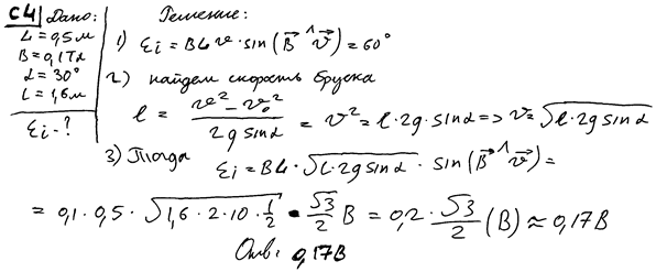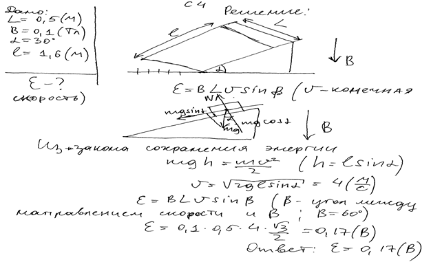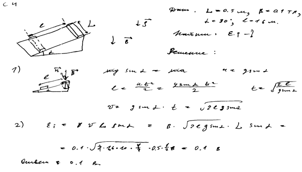 = 0,5 м, соскальзывает из состояния покоя по гладкой наклонной плоскости из диэлектрика в вертикальном магнитном поле индукцией В