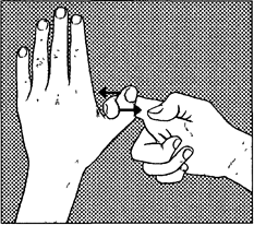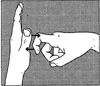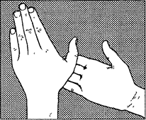 1. Указательным пальцем правой руки тяните на себя большой палец левой руки, который должен сопротивляться изо всех сил. Выполните то же для другой руки.