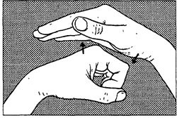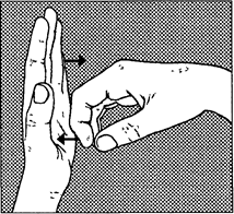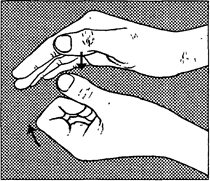 3. Указательным пальцем правой руки с усилием нажимайте на большой палец левой руки со стороны ладони. Большим пальцем необходимо сопротивляться. Повторите то же для другой руки.