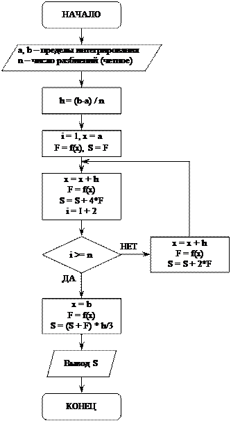 Рис. 3.1 – Блок-схема алгоритма метода Симпсона