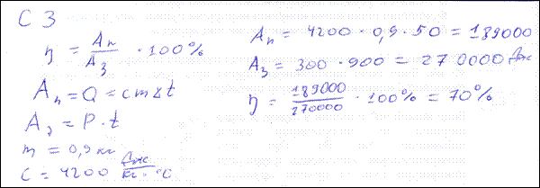 для решения задачи выбранным способом (в данном решении — формулы для расчета КПД, количества теплоты при нагревании тела, и выделяющейся при протекании электрического тока
