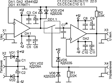 Рис. 3. Схема инверсного включения ЦАП с R-2R матрицей