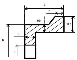 L=75 мм, L’=17 мм, H=5 мм, H0=10 мм , H0’=5 мм, R=150 мм , r=35 мм.
