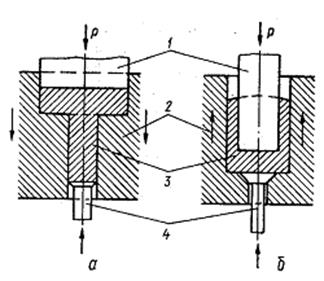 выдавливания: 1- пуансон; 2- матрица; 3 – поковка; 4 – выталкиватель