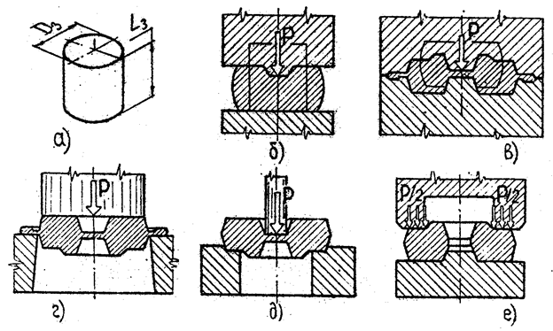 Р и с.3. Схемы штамповки выдавливанием в разъёмных матрицах:
