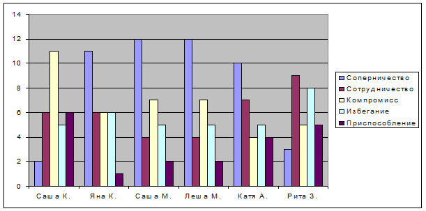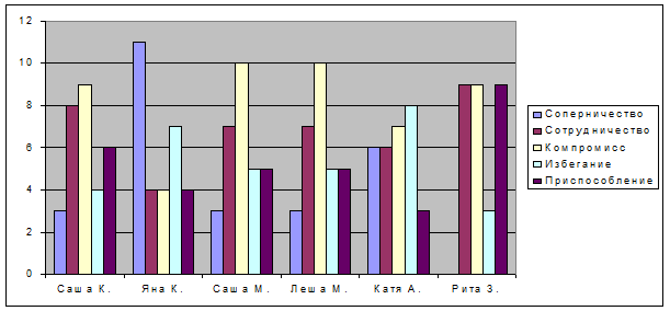 Тест Томаса в контрольной группе показал следующие результаты: