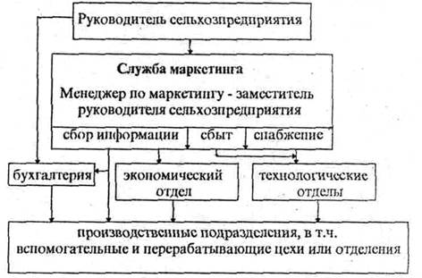 Если самостоятельной службы не будет, то все её функции могут быть переданы либо службе сбыта, либо другому подразделению сельхозпредприятия. Тогда служба маркетинга как бы растворяется в них.