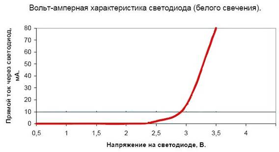 Рисунок 1Типичная ВАХ светодиода.
