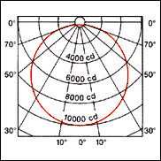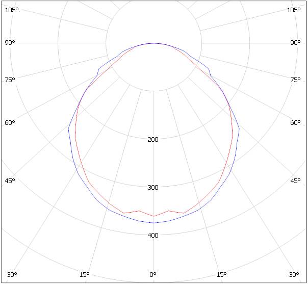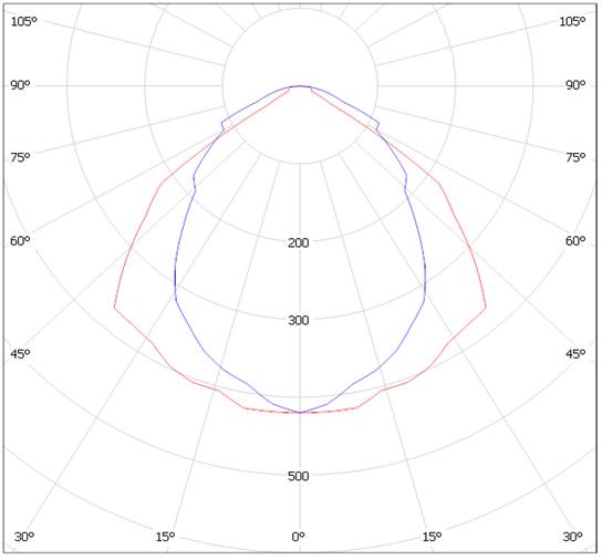 По КСС видно, что защитный угол данного светильника составляет 30, и имеет равномерное распределение силы света. Площадь излучения светильника большая за счет того, что люминесцентная лампа светит всей своей поверхностью и используется параболический отражатель с решетками, следовательно, яркость и слепящий эффект такого светильника не большие.