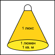 Освещенность Е отражает соотношение падающего светового потока к освещаемой площади. Освещенность равна 1 лк, если световой поток 1 лм равномерно распределяется по площади 1 м2.