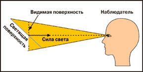 Яркость света L источника света или освещаемой площади является главном фактором для уровня светового ощущения глаза человека.