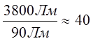 Для получения светового потока всего светильника 3800 Лм необходимо использовать 40 светодиодов.