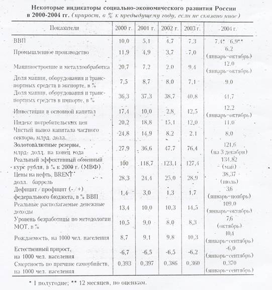 Индикаторы социально-экономического развития России в 2000-2004 гг.