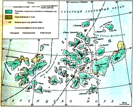 (о. Большевик). Фирновая линия лежит всюду выше границы питания на 150 —350 м. Этот интервал занят зоной ледяного питания ледников.
