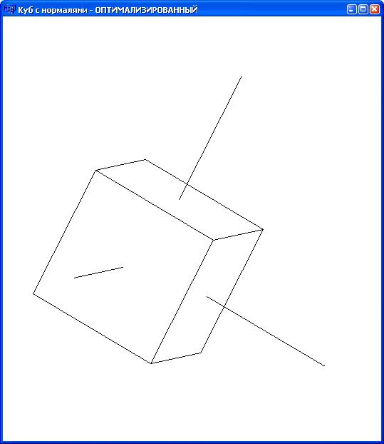 Построить трехмерную модель куба с нормалями к граням и визуализировать её используя классы C++ для работы с векторами и преобразованиями: VECTOR и MATRIX.