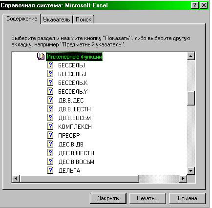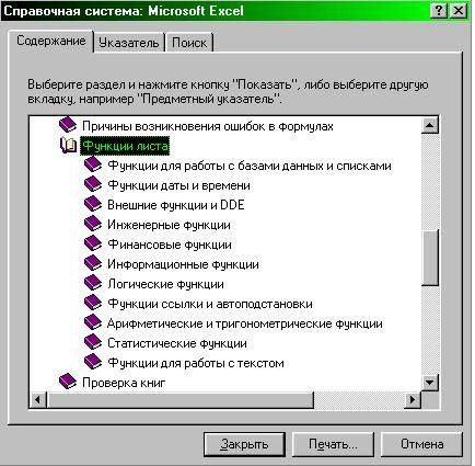 Щелкните имя необходимой функции и ознакомьтесь с ее описанием. Обращение к каждой функции состоит из двух частей:имени функции и аргументов в круглых скобках. Аргументы функции могут быть следующих типов: