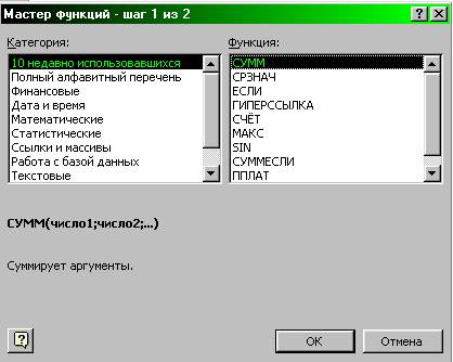 Для удобства функции в EXCEL разбиты по категориям (матаматические, финансовые, статистические и т. д.) . Зная, к какой категории относится функция, справку о ней можно получить следующим образом: