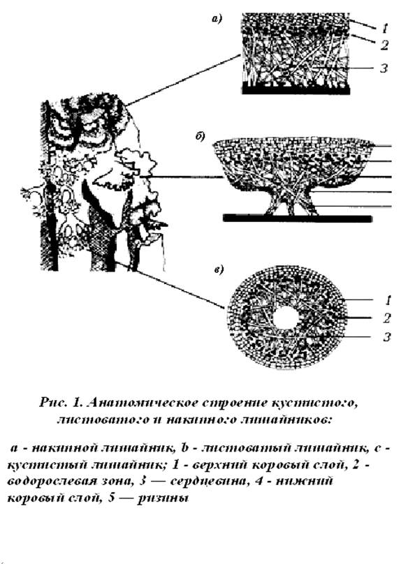 2) Анатомия слоевища лишайников