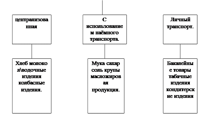 При централизованной доставке завоз товаров осуществляется собственным транспортом или транспортом общего пользования. Если завоз осуществляется транспортом общего пользования, то наряду с договором поставки, который заключается между поставщиком и покупателем, поставщик заключает договор с автотранспортным предприятием на перевозку товаров.