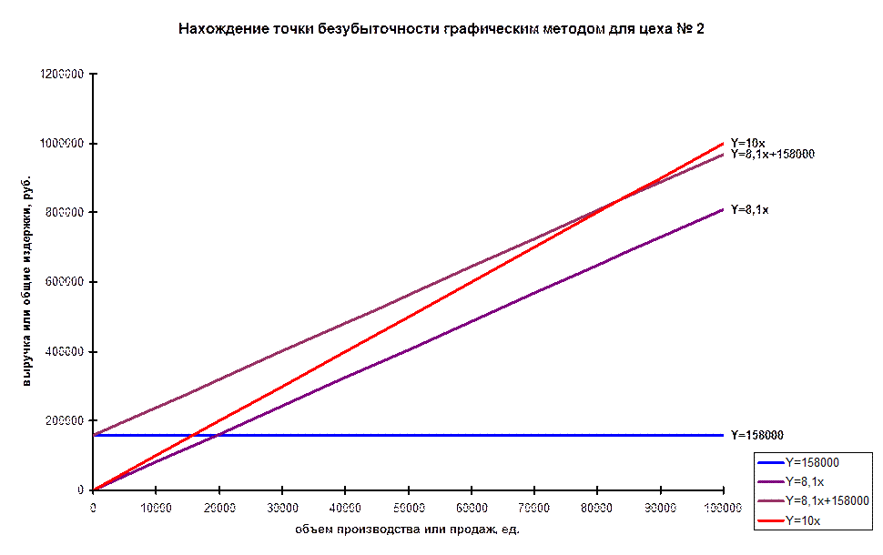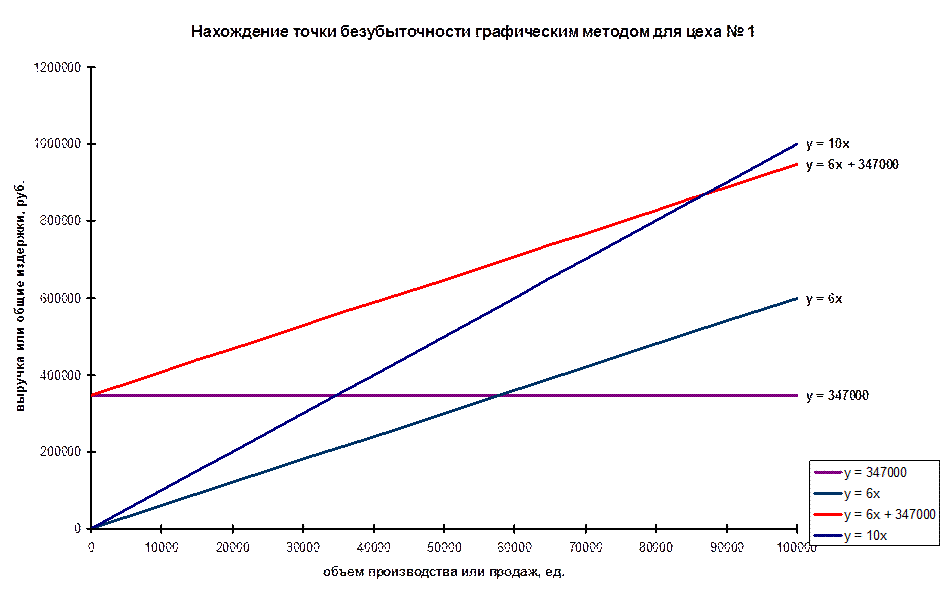 1. Определить для каждого цеха объем продукции в точке безубыточности. Построить соответствующие графики.