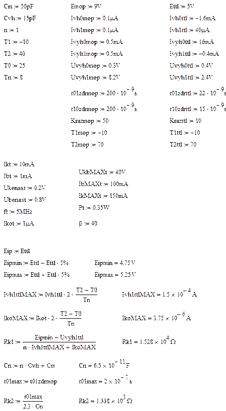 Расчёт преобразователя уровней КМДП - ТТЛ проводится аналогично с использованием выражений: