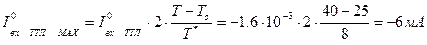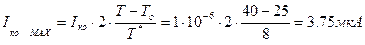 Рассчитаем максимальные значения токов при максимальной температуре, при этом воспользуемся формулой, устанавливающей зависимость тока от окружающей среды (см. п.5.а)):