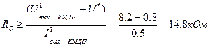 Если , то биполярный транзистор VT должен войти в режим насыщения, в этом случае, ток базы рассчитывается по формуле: , при условии, что , получаем первое ограничение, накладываемое на