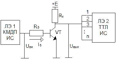 Преобразователь уровней должен обеспечить преобразование выходного логического уровня одного элемента ЛЭ1 во входной логический уровень другого элемента ЛЭ2 с заданным коэффициентом разветвления n.