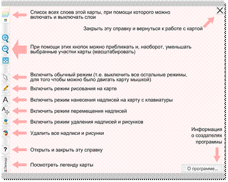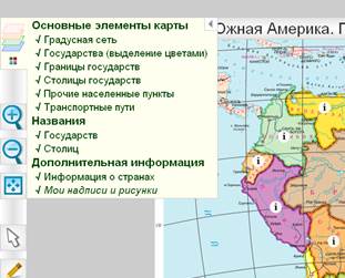 · Возможность отображения только необходимых на конкретном уроке подписей и условных обозначений карты;
