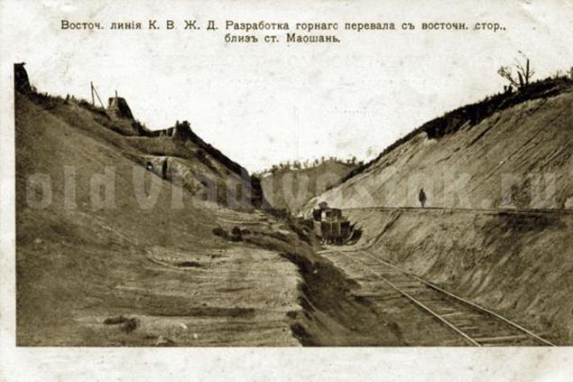 Восточная линия КВЖД. Разработка горного перевала с восточной стороны близ ст. Маошань (Изд. Д.П. Ефимова. Фототипия О. Ренар. Москва, 1904 г.)