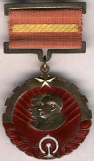 В память о передачи КЧЖД был выпущен бронзовый знак, в виде стилизированной шестеренки в нижней части перевитой красной лентой размером 39х44 мм. В середине на покрытии из красной эмали расходящиеся лучи и профильное изображение двух вождей того периода Иосифа Виссарионовича Сталина и Мао Цзэдуна, под ними ж.-д. эмблема белой эмали на верху знака пятиконечная звезда. На оборотной стороне китайская надпись иероглифами предположительно «На Чанчуньской железной дороге. Президиум Центрального Народного правительства Китая» дата 1952 и номер. Крепление: на двух планках 36 мм красная лента 32х18 мм с желтой вытканной полосой. [7]