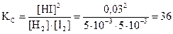 оказалась равной 0,01 моль/л. Вычислите константу равновесия.
