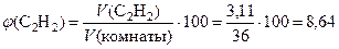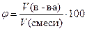 – объемная доля вещества, %;