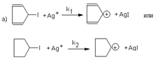 кинетические уравнения часто имеют вид k=[RCl] или k=[RCl][OH-