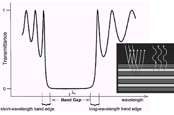 последовательности элементарных ячеек (рис. 8). Из рисунка видно, что структура имеет запрещенную зону для всех направлений векторов, т.е. существует область длин волн, для которых структура является полностью отражающей для всех углов падений.