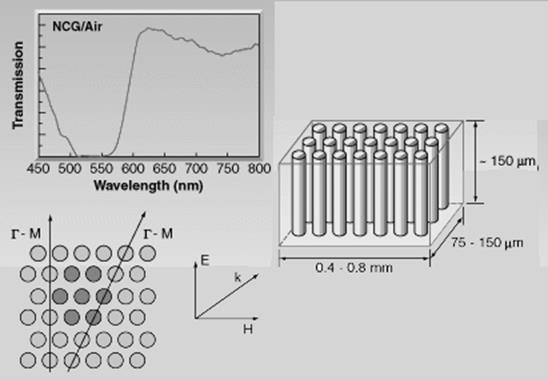 Как показывают расчеты и эксперимент [28], линейный дефект в фотонном кристалле создает волновод, который, в отличие от волоконного или планарного, может изгибаться практически под любым углом со 100%-ным пропусканием.