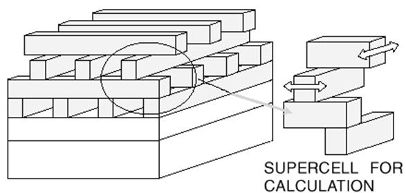 Полностью трехмерную фотонную структуру можно построить из удлиненных параллелепипедов, расположенных в виде поленницы дров (рис.7).