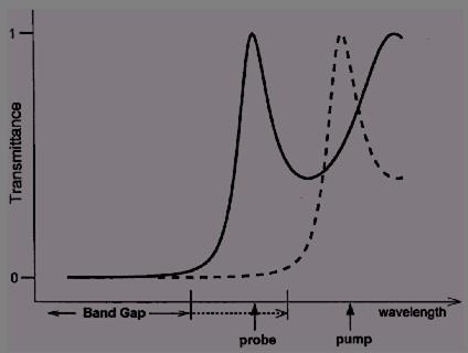При одновременной подаче на такую ячейку малоинтенсивного сигнала с длиной волны, соответствующей краю запрещенной зоны, и мощного управляющего сигнала на частоте, несколько большей края запрещенной зоны, происходит смещение края зоны, частота малоинтенсивного сигнала попадает в запрещенную зону, и он полностью отражается. В отсутствие интенсивного управляющего сигнала пробный (логический) сигнал проходит, и таким образом можно осуществить управление световыми потоками. Комбинируя подобного рода фотонно-кристаллические ячейки, можно осуществить любые логические операции, подобно системам S-SEED [8].
