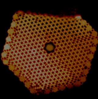 В последнее время фотонно-кристаллические и микроструктурные волокна привлекают все большее внимание в связи с их уникальными свойствами [40 - 43]. Как правило, эти волокна включают периодическую структуру воздушных пустот в пределах кварцевой сердцевины, причем в центре находиться либо кварцевое ядро (рис. 18), либо ядро в виде полого воздушного волновода (рис. 19).
